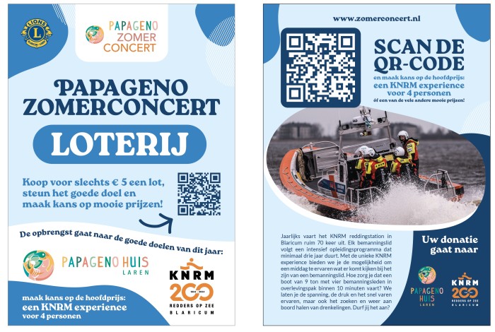 Met jouw bezoek steunt u de volgende doelen: de Stichting Papageno Huis Laren en de Stichting Hulphond Nederland.